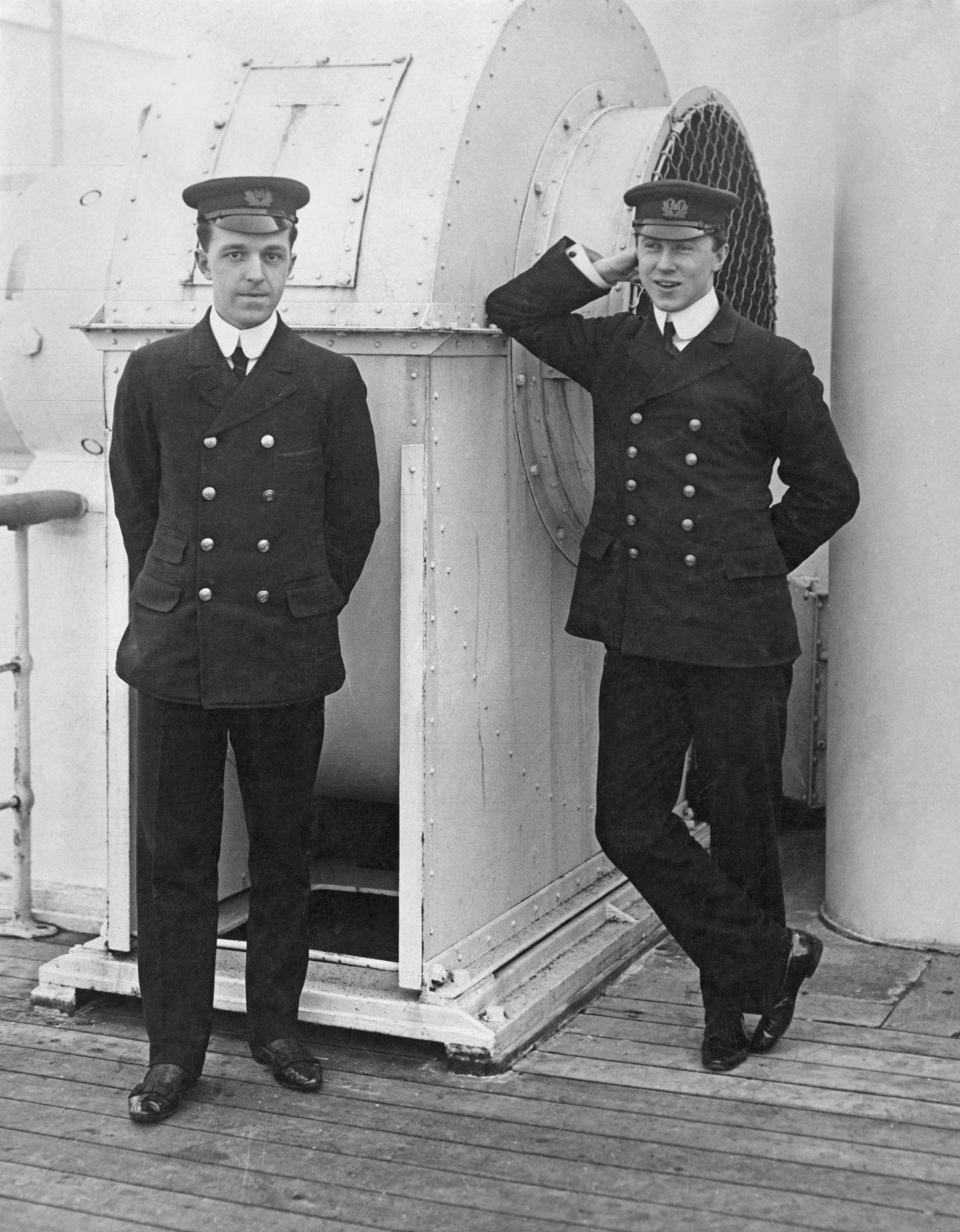 Lookouts Frederick Fleet and Reginald Lee were stationed in the crow's nest with no means of warming themselves, stationed there for extended periods, in near-freezing temperatures, with absolutely calm, mirrorlike water — conditions that actually eliminated the usual visual cue of waves breaking at an iceberg's base.
